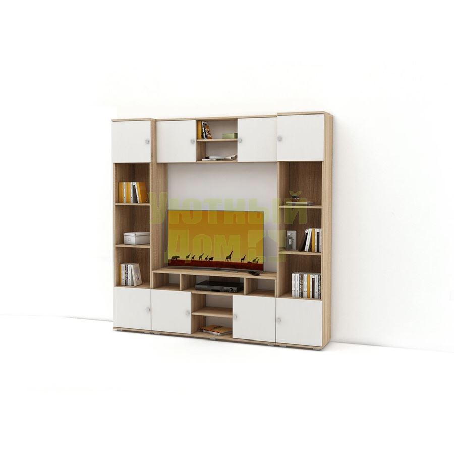Купить Стенка Тунис-2 (СТТ-2 + ТВТ + ПНТ + СТТ-2)-Дуб-сонома/Белый