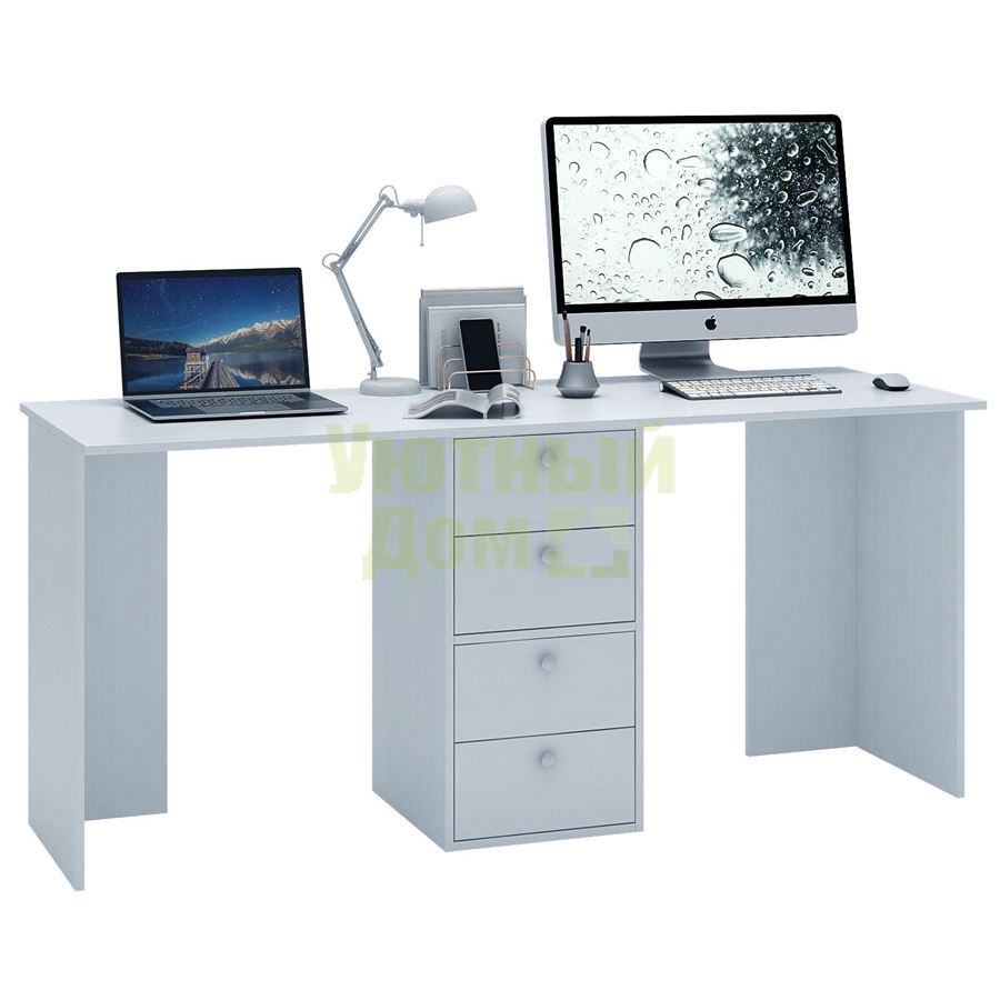 Стол является комплектом модульной системы Прайм. Вы можете собрать индивидуальный комплект из столешниц разных размеров, тумб разных форм и их наполнений (дверок, блока ящиков, ящиков со стеклом или больших ящиков). Тип ручки: кнопка. Декоративные заглушки в тон мебели. Войлочные и пластиковые подпятники. В выдвижных ящиках используются качественные роликовые направляющие. Сборку данного товара желательно осуществлять вдвоем во избежание травмоопасных ситуаций или механических повреждений мебели. Комплект состоит из: столешницы Прайм-17 (1 шт.), полки-тумбы Прайм-21 (1 шт.), блока ящиков Прайм (2 шт.)