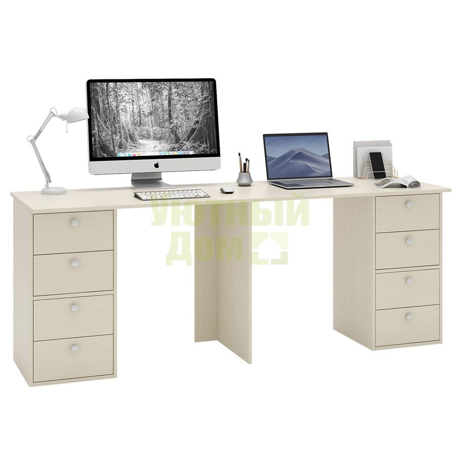 Стол является комплектом модульной системы Прайм. Вы можете собрать индивидуальный комплект из столешниц разных размеров, тумб разных форм и их наполнений (дверок, блока ящиков, ящиков со стеклом или больших ящиков).