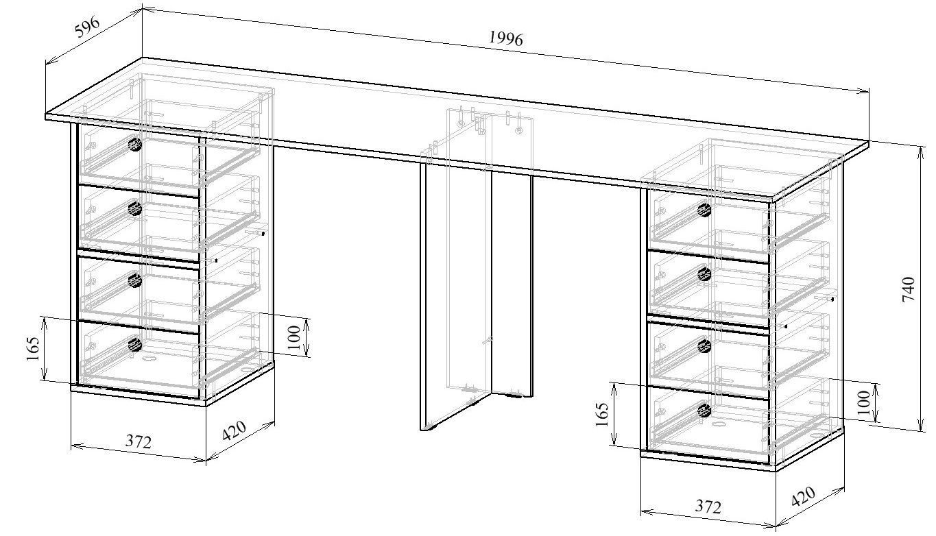 Стол является комплектом модульной системы Прайм. Вы можете собрать индивидуальный комплект из столешниц разных размеров, тумб разных форм и их наполнений (дверок, блока ящиков, ящиков со стеклом или больших ящиков).