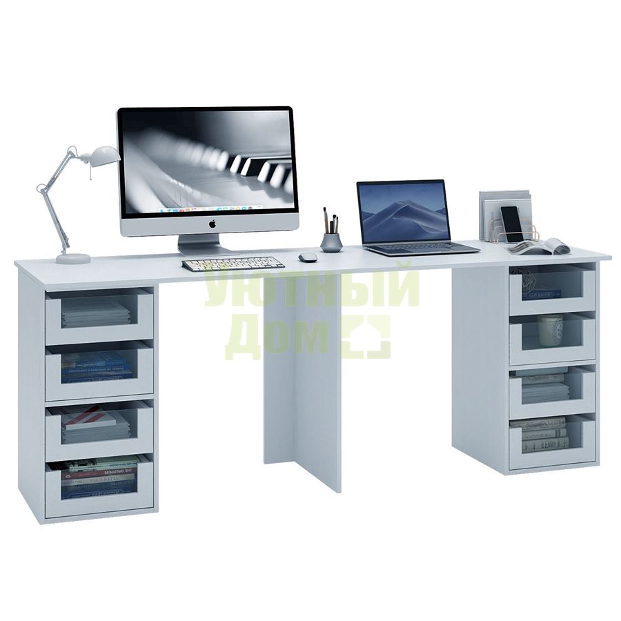 Стол является комплектом модульной системы Прайм. Вы можете собрать индивидуальный комплект из столешниц разных размеров, тумб разных форм и их наполнений (дверок, блока ящиков, ящиков со стеклом или больших ящиков).