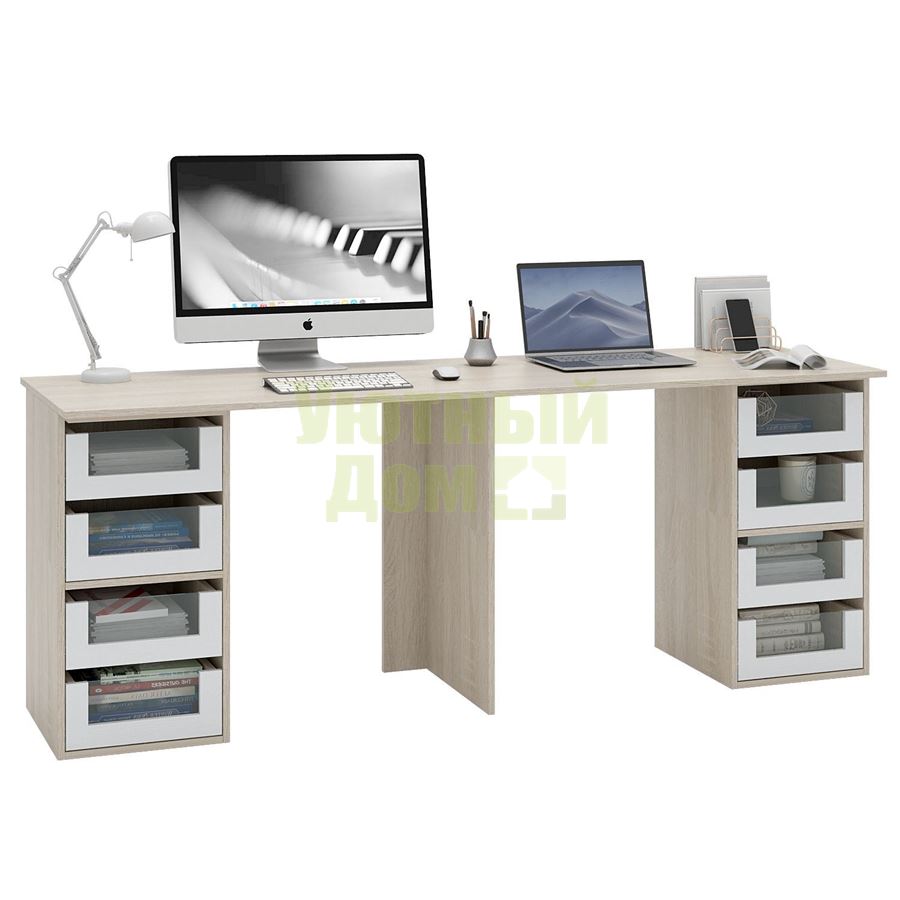 Стол является комплектом модульной системы Прайм. Вы можете собрать индивидуальный комплект из столешниц разных размеров, тумб разных форм и их наполнений (дверок, блока ящиков, ящиков со стеклом или больших ящиков).