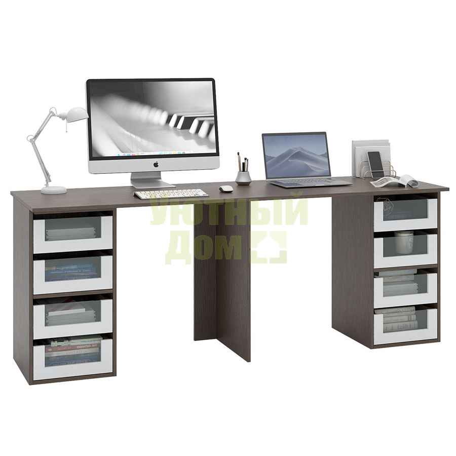 Стол является комплектом модульной системы Прайм. Вы можете собрать индивидуальный комплект из столешниц разных размеров, тумб разных форм и их наполнений (дверок, блока ящиков, ящиков со стеклом или больших ящиков).