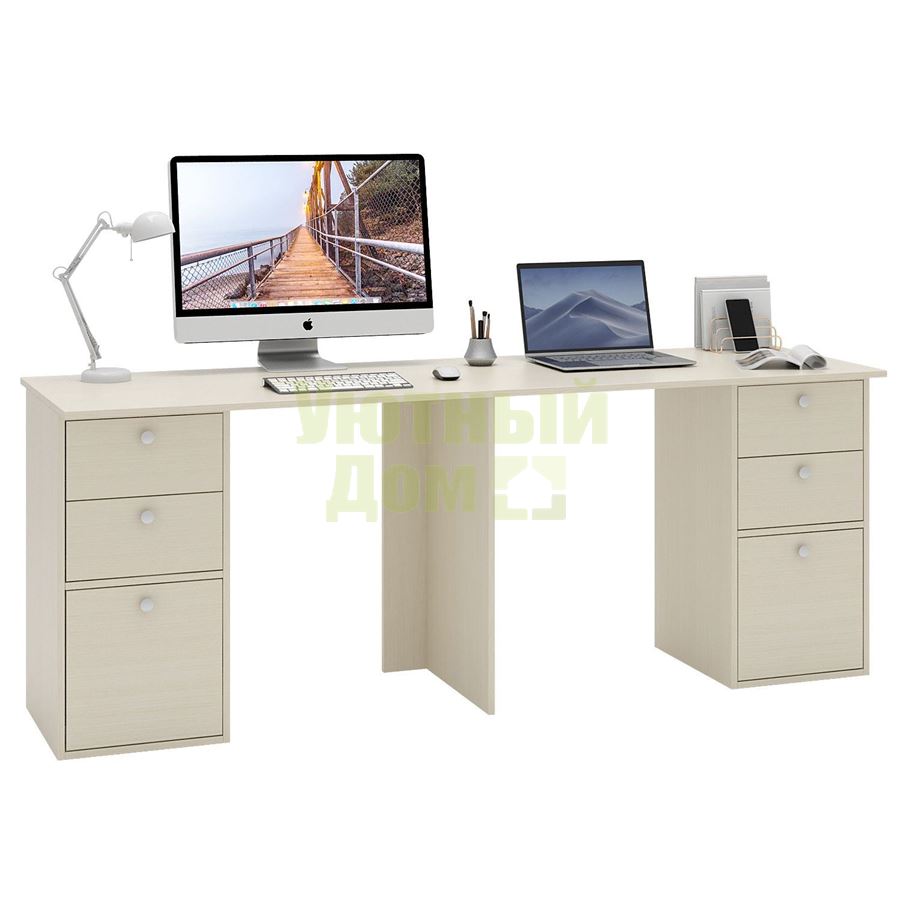 Стол является комплектом модульной системы Прайм. Вы можете собрать индивидуальный комплект из столешниц разных размеров, тумб разных форм и их наполнений (дверок, блока ящиков, ящиков со стеклом или больших ящиков). Тип ручки: кнопка. Декоративные заглушки в тон мебели. Войлочные и пластиковые подпятники. В выдвижных ящиках используются качественные роликовые направляющие. Сборку данного товара желательно осуществлять вдвоем во избежание травмоопасных ситуаций или механических повреждений мебели. Комплект состоит из: столешницы Прайм-20 (1 шт.), полки-тумбы Прайм-21 (2 шт.), блока ящиков Прайм (2 шт.), большого ящика Прайм (2 шт.)