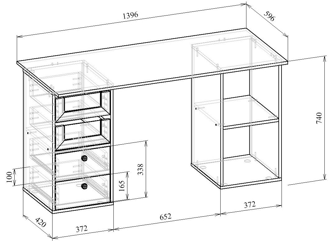 Стол является комплектом модульной системы Прайм. Вы можете собрать индивидуальный комплект из столешниц разных размеров, тумб разных форм и их наполнений (дверок, блока ящиков, ящиков со стеклом или больших ящиков).