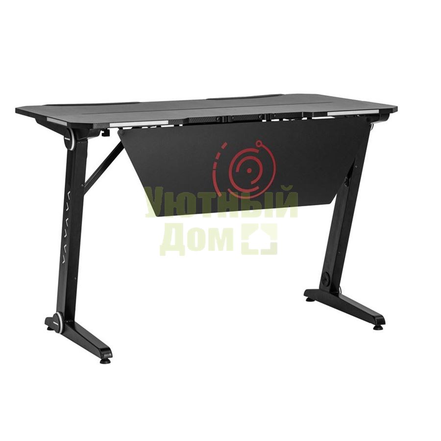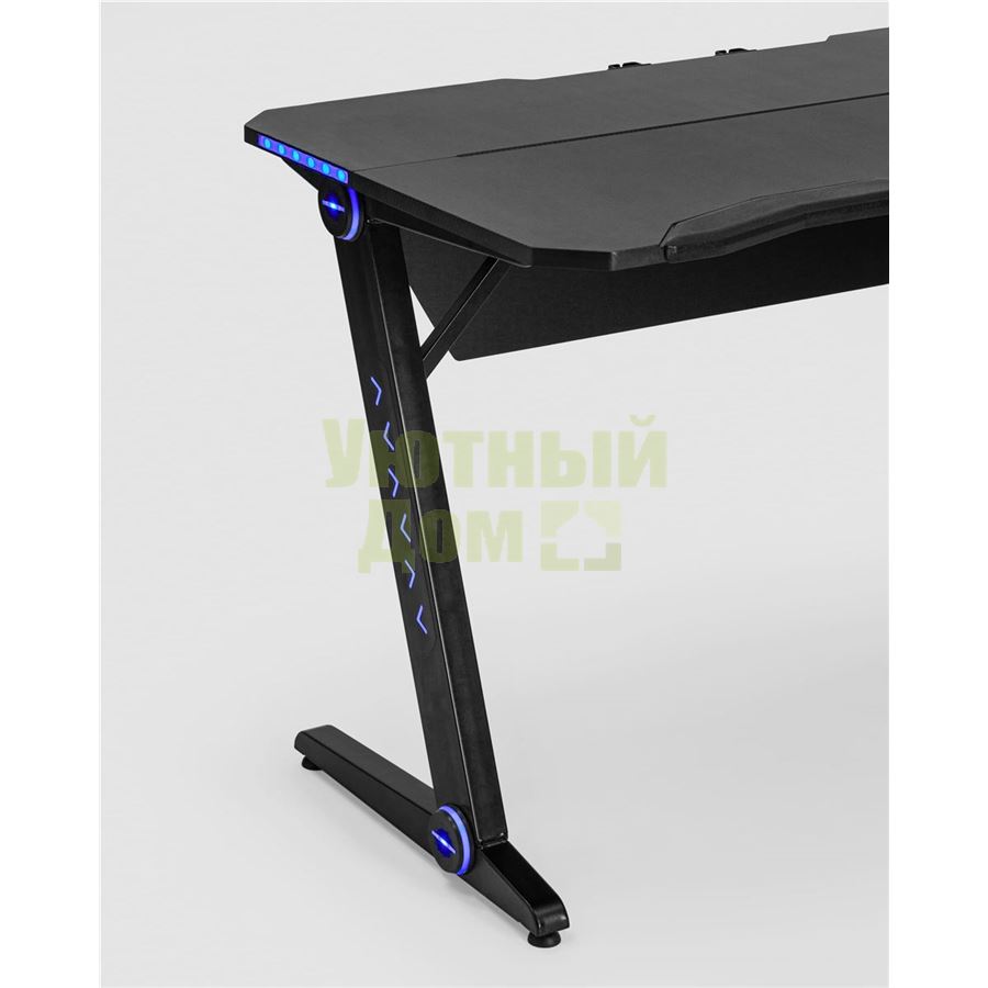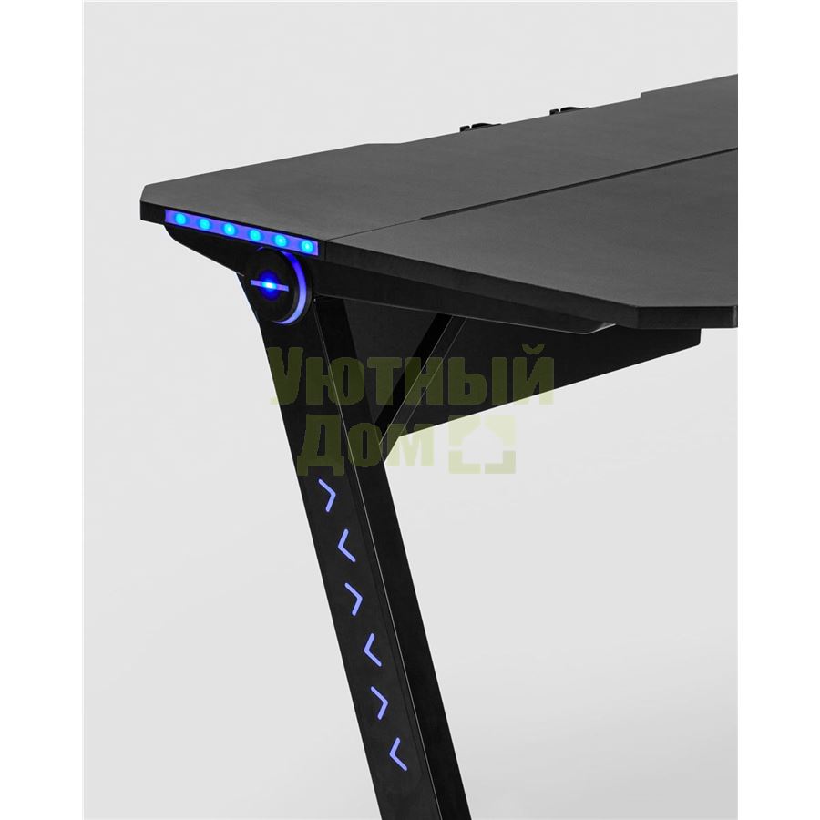 Стильный компьютерный стол станет красивым и удобным дополнением комнаты. LED-подсветка столешницы и ножек станет ярким акцентом игрового или рабочего места. Модель стола разработана специально для геймеров, удобная конструкция позволяет разместить необходимые комплектующие ПК и управлять мышью без скованных движений. Покрытие под карбон упрощает управление мышью, а также устойчиво к воде и грязи. Прочная столешница выполнена из ХДФ-плиты - материал по свойствам похожий на МДФ, но повышенной прочности и тоньше, покрытой виниловой пленкой под карбон. Форма столешницы продумана до мелочей, так, выемка для проводов в столешнице со стороны стены позволяет избежать заломов и спутывания проводов.