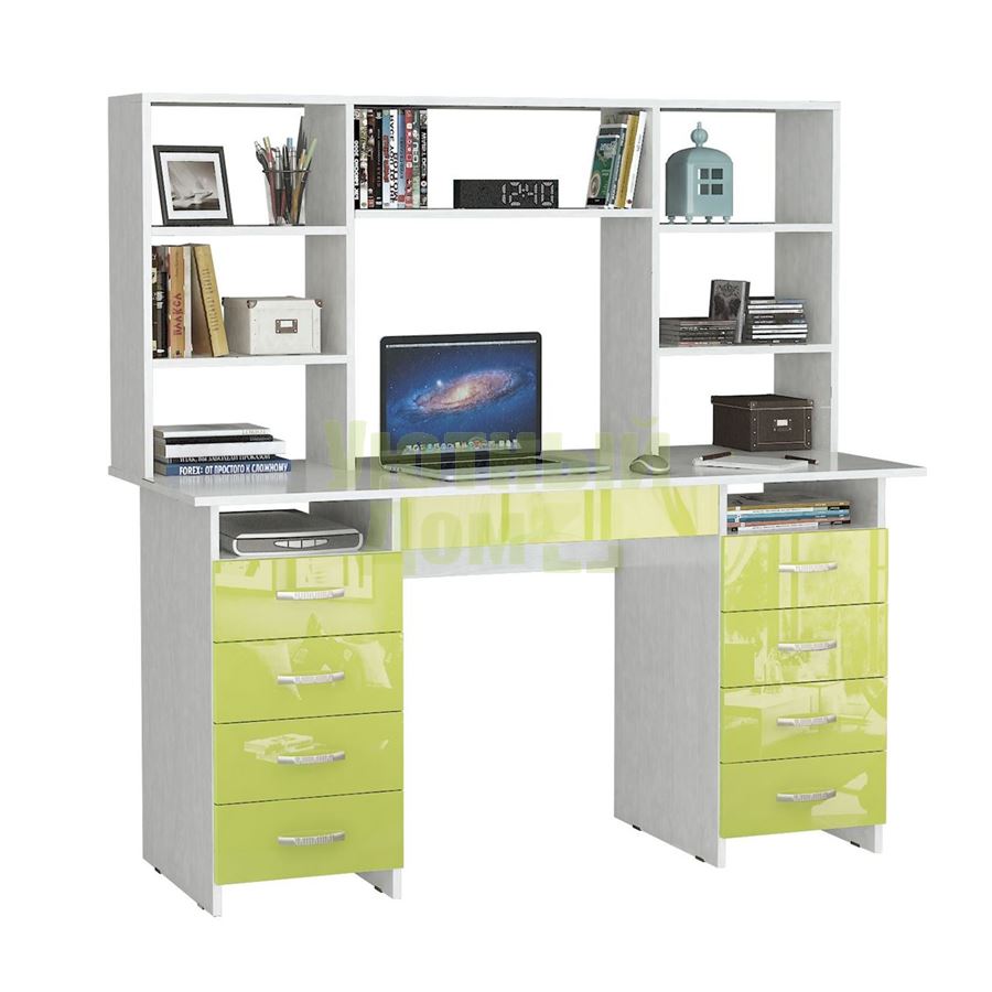 Купить Стол компьютерный Милан-10Я Глянец, с надставкой белый / лайм