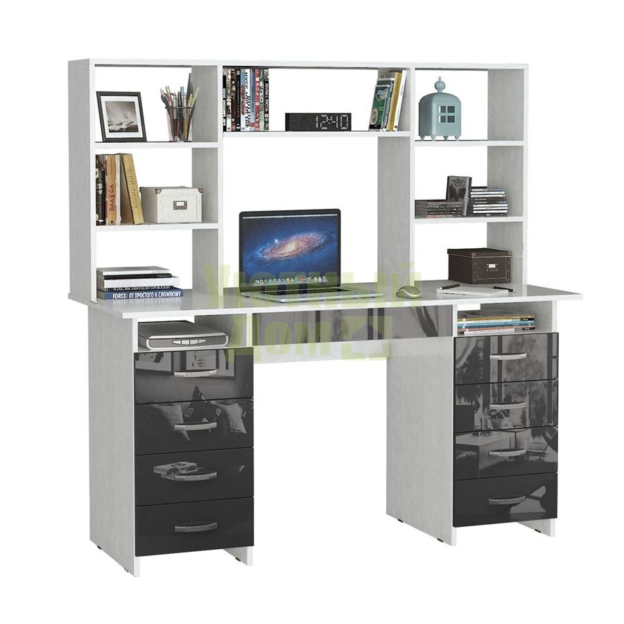 Купить Стол компьютерный Милан-10Я Глянец, с надставкой белый / серый