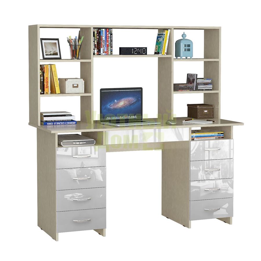 Купить Стол компьютерный Милан-10Я Глянец, с надставкой дуб молочный / белый