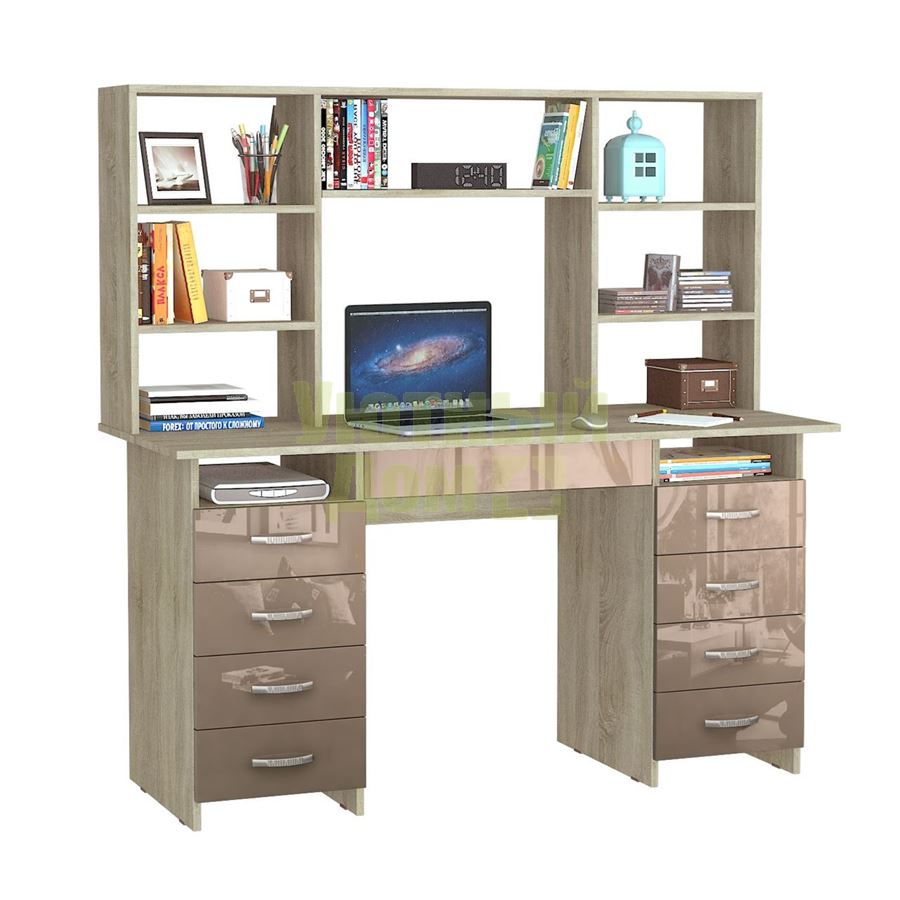 Стол компьютерный Милан-10Я Глянец, с надставкой дуб сонома / капучино