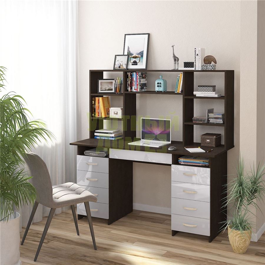 Купить Стол компьютерный Милан-10Я Глянец, с надставкой венге / белый