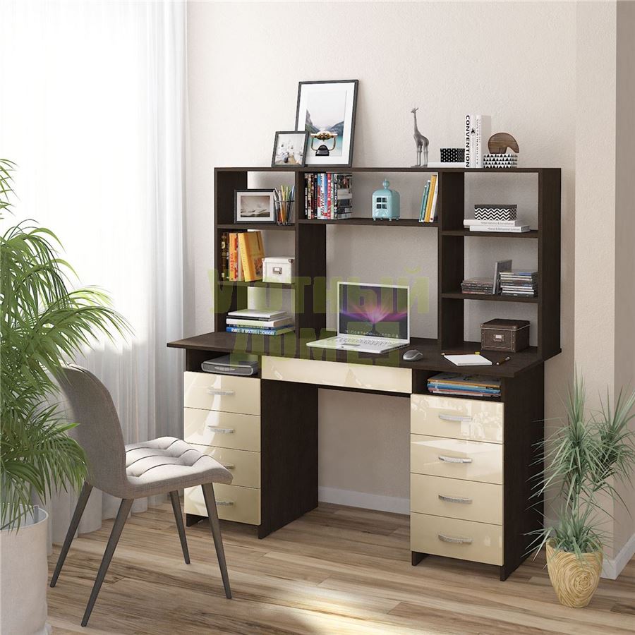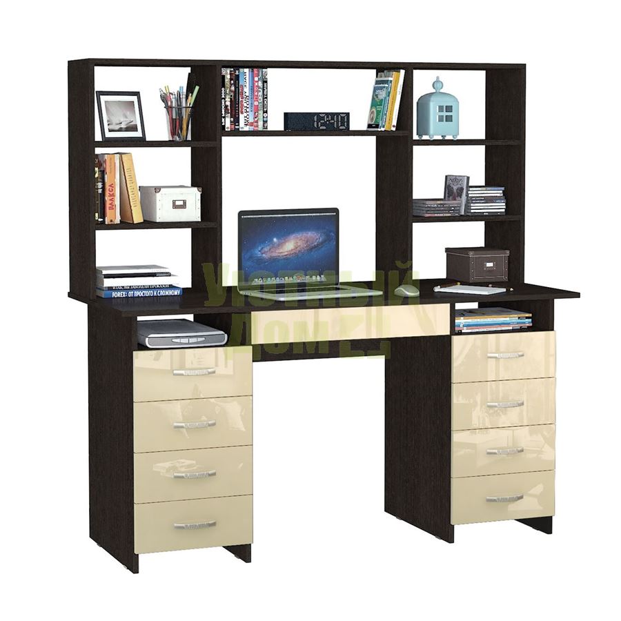 Купить Стол компьютерный Милан-10Я Глянец, с надставкой венге / бежевый