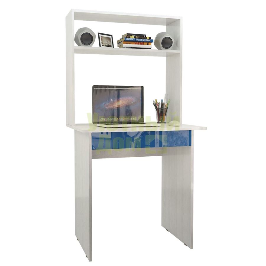 Купить Стол компьютерный Милан-2Я Глянец, с надставкой белый / синий