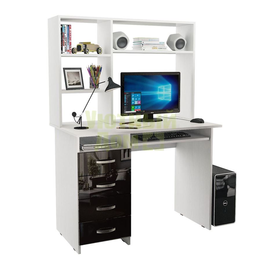 Стол компьютерный Милан-3 Глянец, с надставкой белый / чёрный