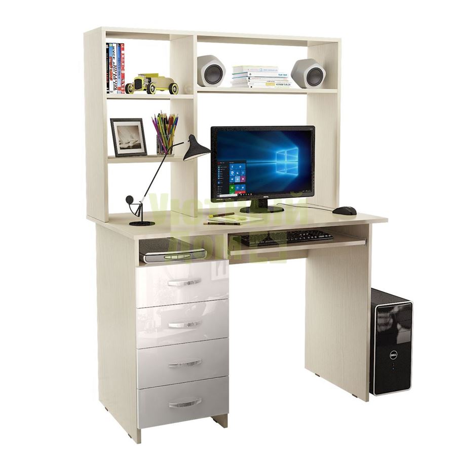 Купить Стол компьютерный Милан-3 Глянец, с надставкой дуб молочный / белый