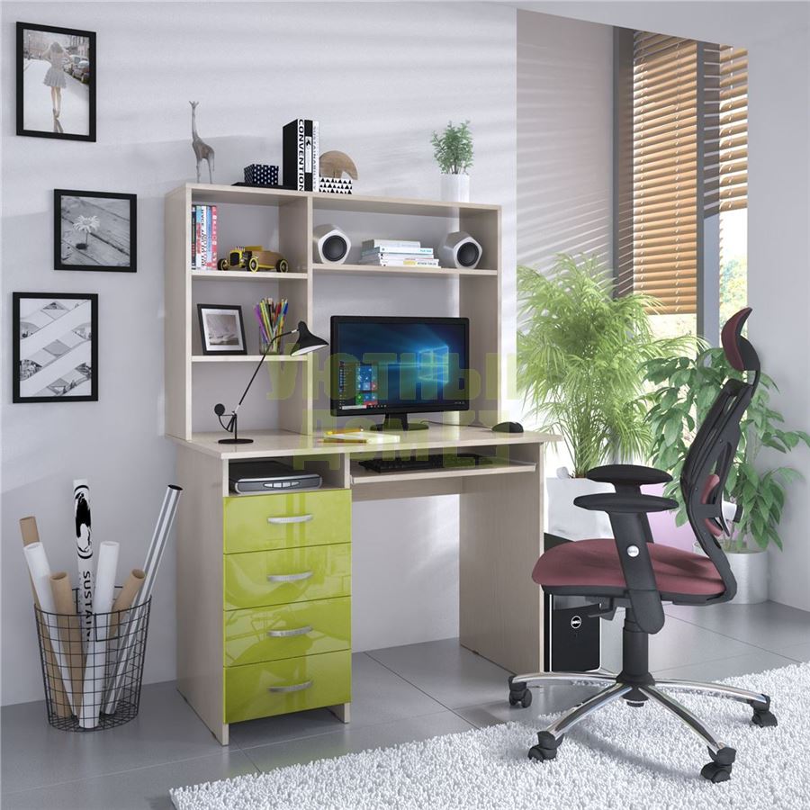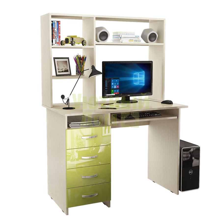 Стол компьютерный Милан-3 Глянец, с надставкой дуб молочный / лайм