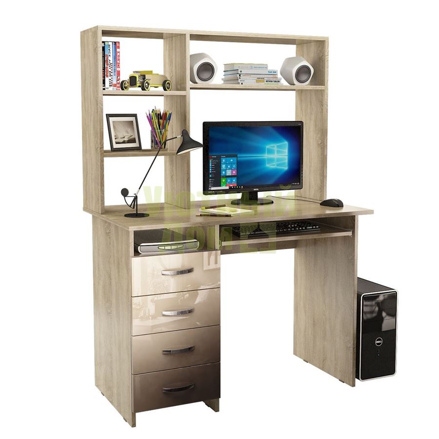 Стол компьютерный Милан-3 Глянец, с надставкой дуб сонома / капучино