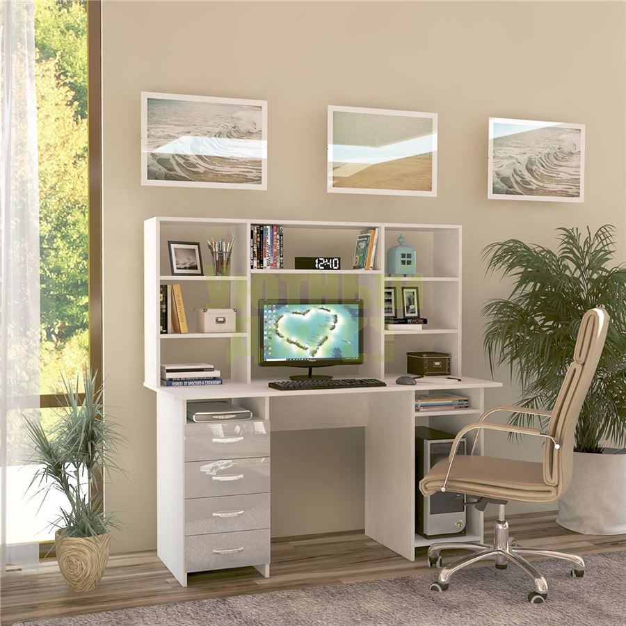 Купить Стол компьютерный Милан-6 Глянец, с надставкой белый / белый