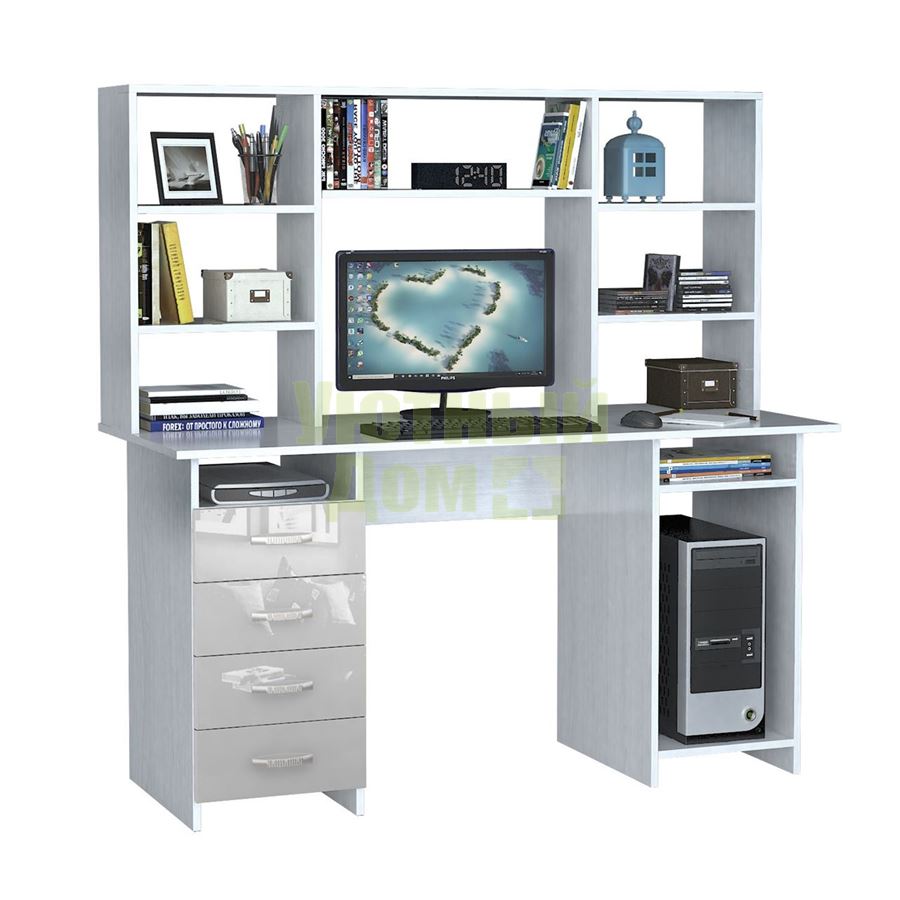 Стол компьютерный Милан-6 Глянец, с надставкой белый / белый