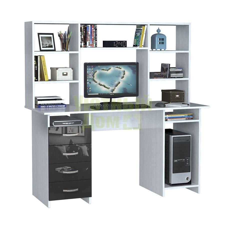 Купить Стол компьютерный Милан-6 Глянец, с надставкой белый / серый
