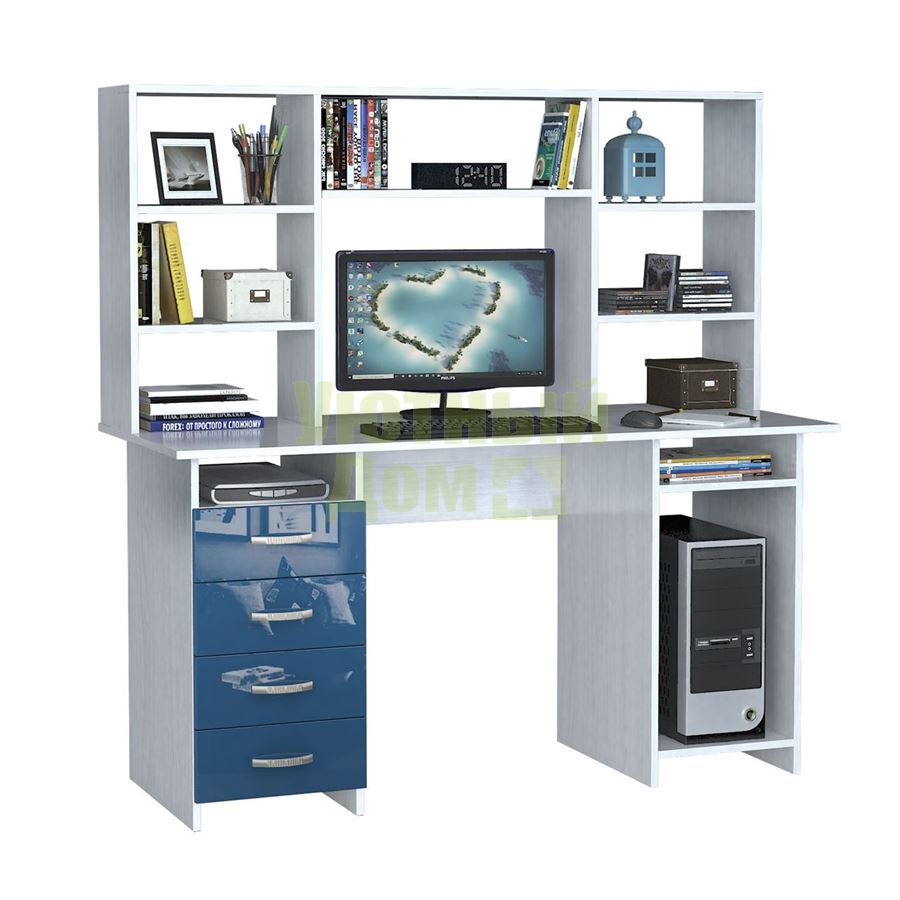 Купить Стол компьютерный Милан-6 Глянец, с надставкой белый / синий