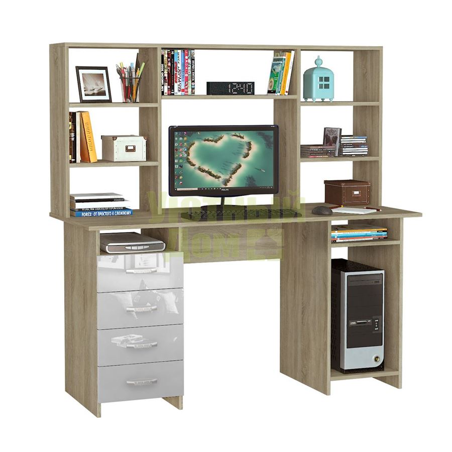 Стол компьютерный Милан-6 Глянец, с надставкой дуб сонома / белый