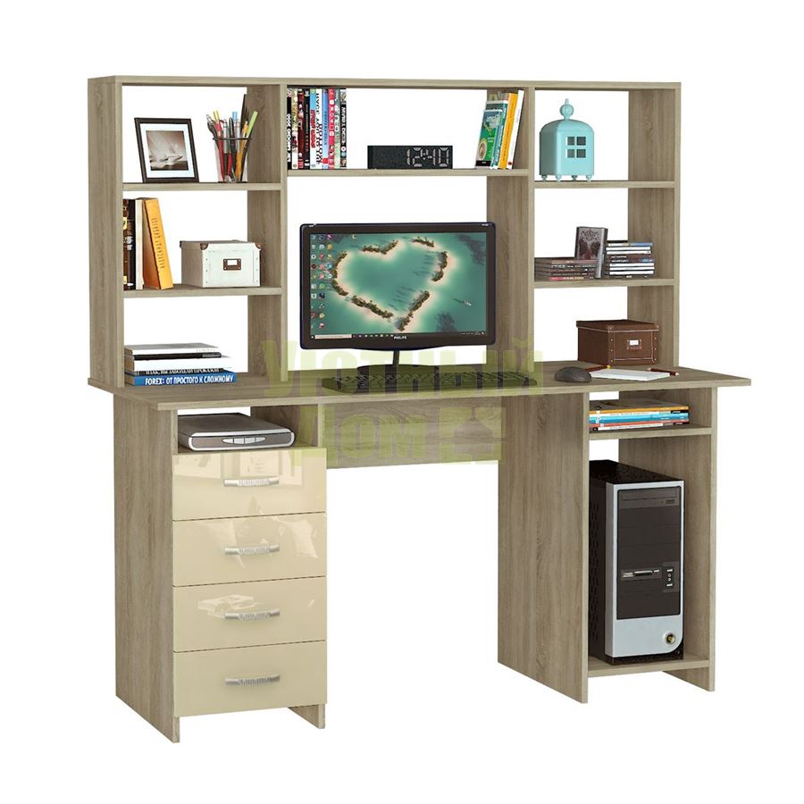 Купить Стол компьютерный Милан-6 Глянец, с надставкой дуб сонома / бежевый