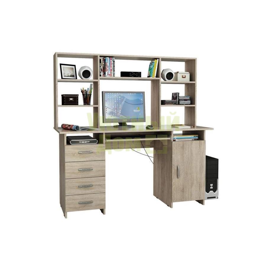 Купить Стол компьютерный Милан-7П, с полкой и надставкой дуб сонома