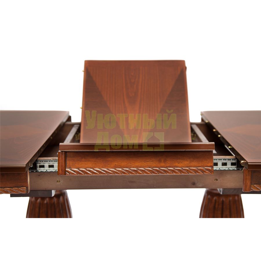 MERCURY (Меркурий) – Классический раскладной обеденный стол. Вставка убирается под столешницу посредством удобного механизма. Столешница с красивым шпоном, основание сделано из натуральной Гевеи. Цвет: Коричневый в рыжину.