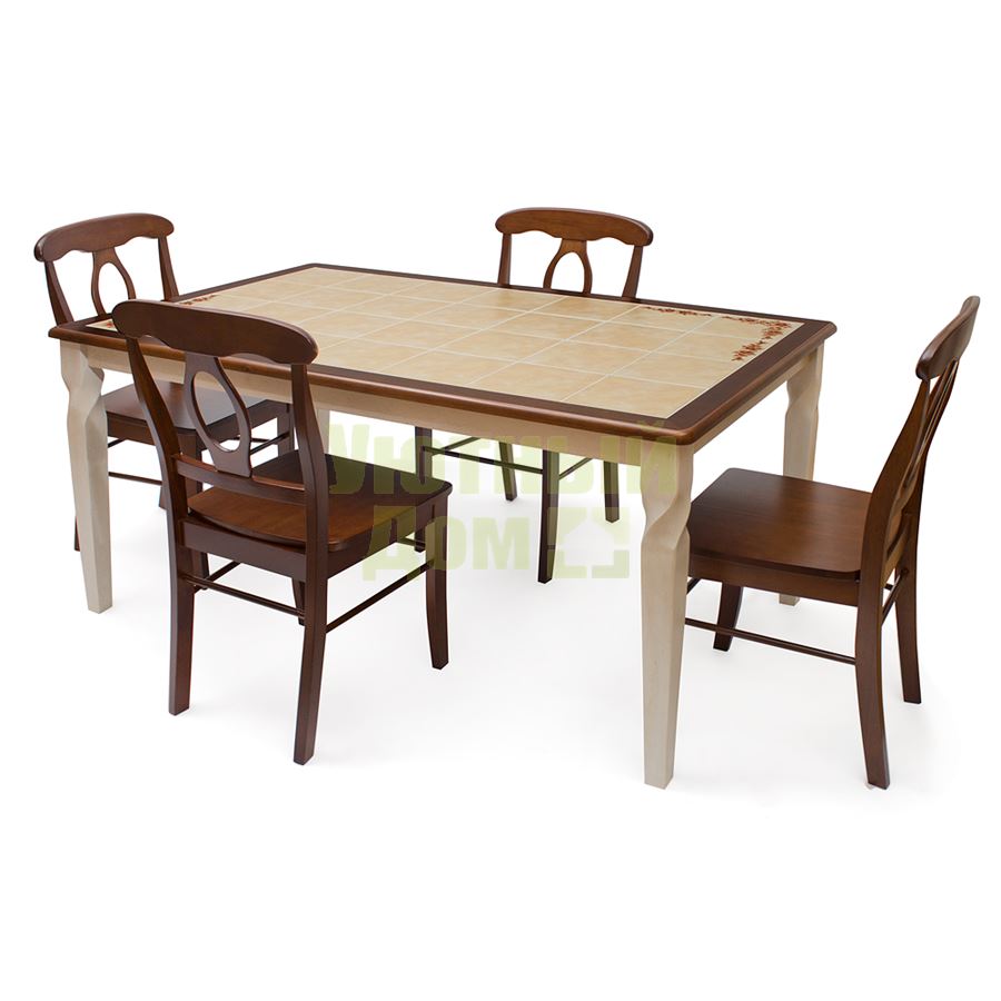 Купить Стол обеденный с плиткой Эмир 3760Р Античный белый/Тёмный дуб
