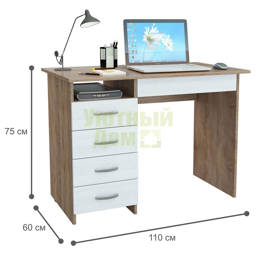 Вы можете купить Стол письменный Милан-1 дуб сонома / белый в интернет-магазине Уютный Дом по низкой цене. Стол письменный Милан-1 дуб сонома / белый: описание, фото, характеристики, отзывы покупателей, инструкция доступны на нашем сайте. Возможна любая форма оплаты: наличные, банковские карты, по счету, рассрочка. Доставка осуществляется в любой регион России. Гарантия производителя.
