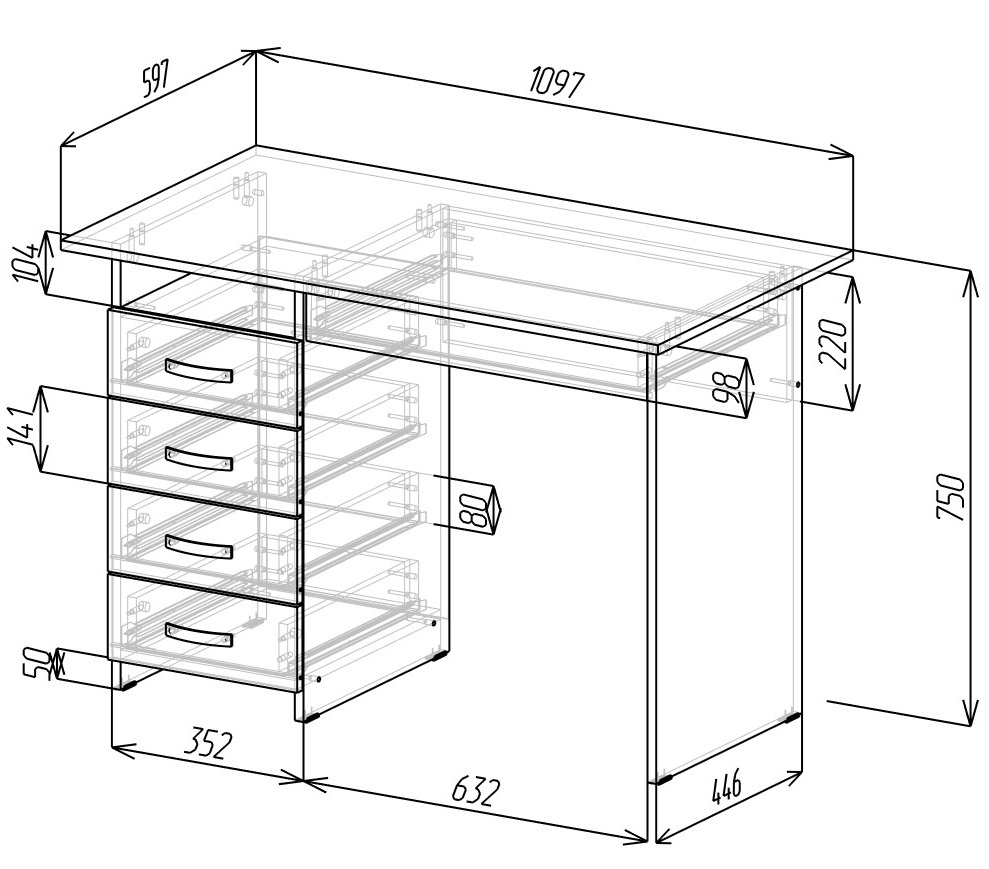 В выдвижных ящиках используются качественные роликовые направляющие длиной 400 мм.