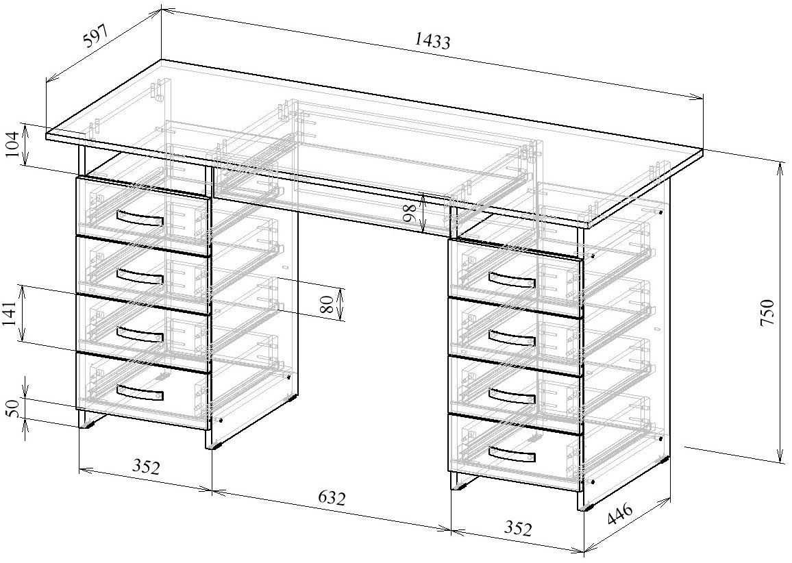 В выдвижных ящиках используются качественные роликовые направляющие длиной 400 мм.