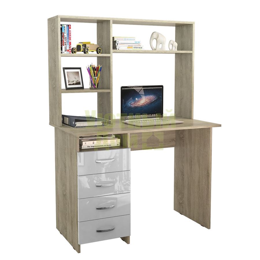 Стол письменный Милан, Левый/Правый Глянец, с надставкой дуб сонома / белый