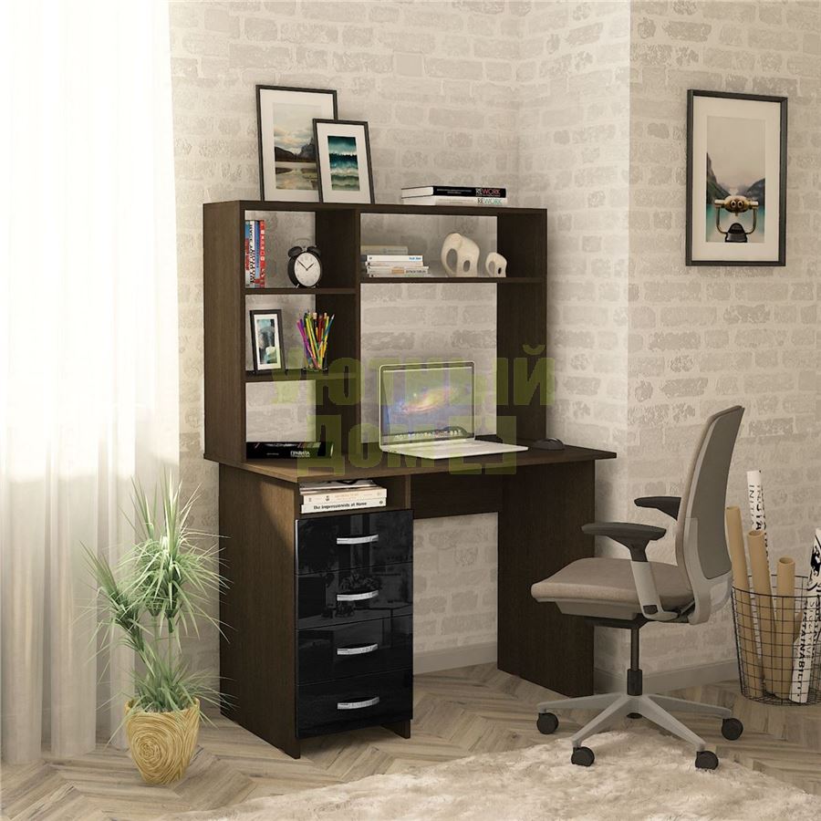 Стол письменный Милан, Левый/Правый Глянец, с надставкой венге / чёрный