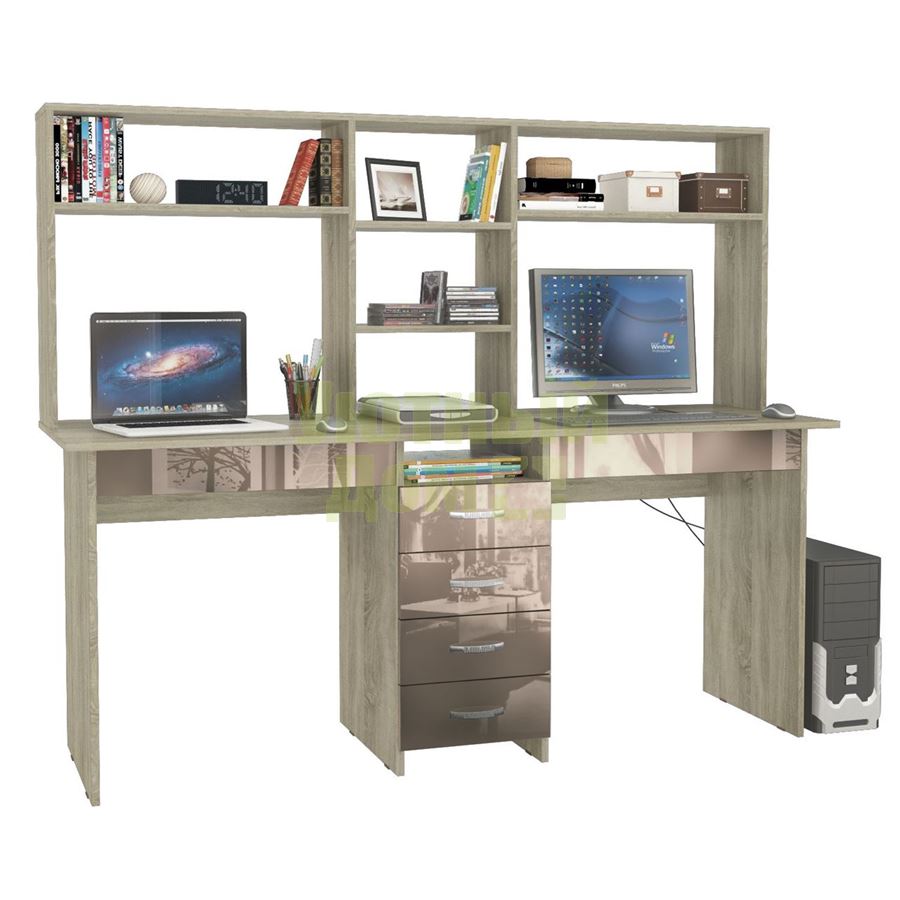 Стол письменный Тандем-2Я Глянец, с надставкой дуб сонома / капучино