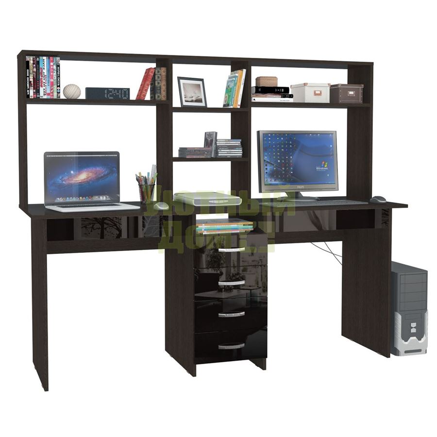 Стол письменный Тандем-2Я Глянец, с надставкой венге / чёрный