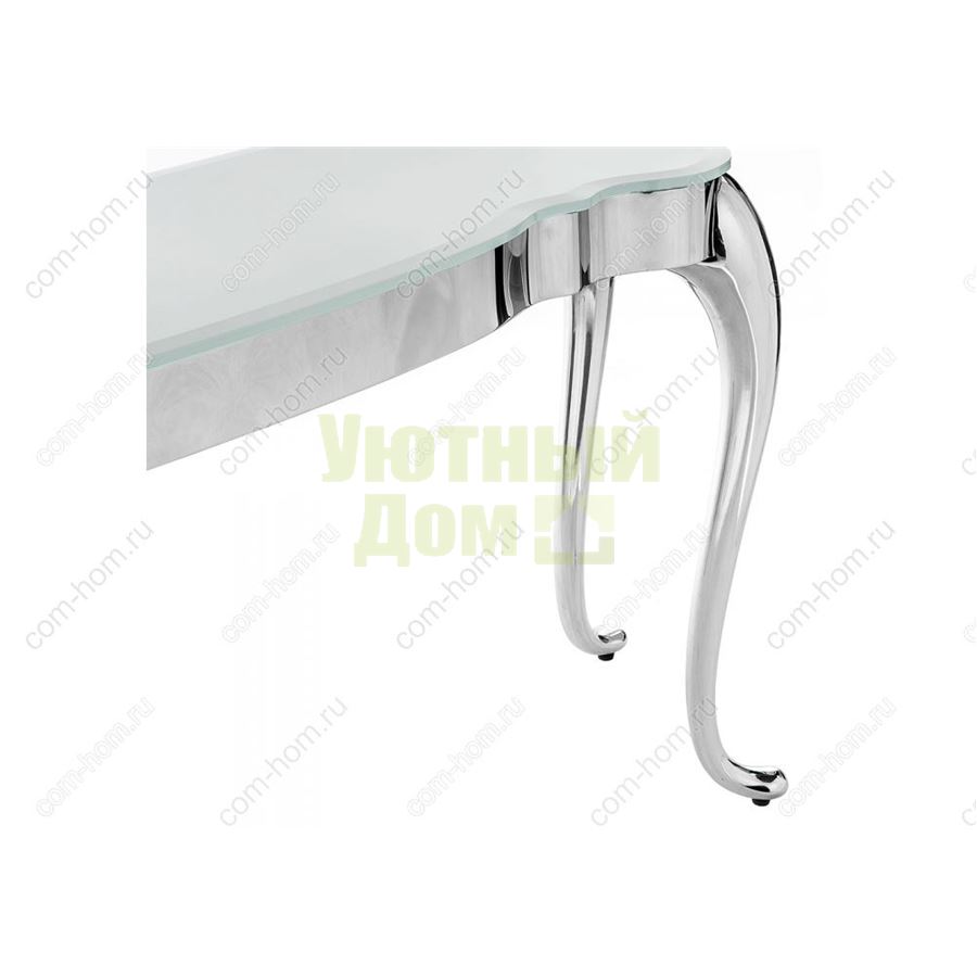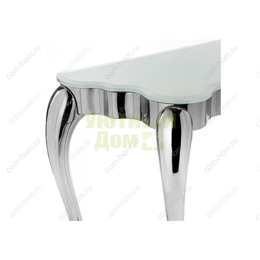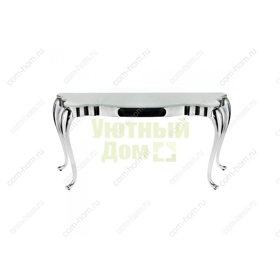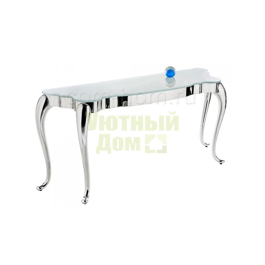 Стиль: Современный; Цвет: Хром; Ширина, см: 164; Глубина, см: 48; Высота, см: 74; Количество ножек: 4; Материал каркаса: Металл; Материал столешницы: Стекло; Наличие ящика: Без ящика; Производитель: Китай; Форма поставки: В разобранном виде