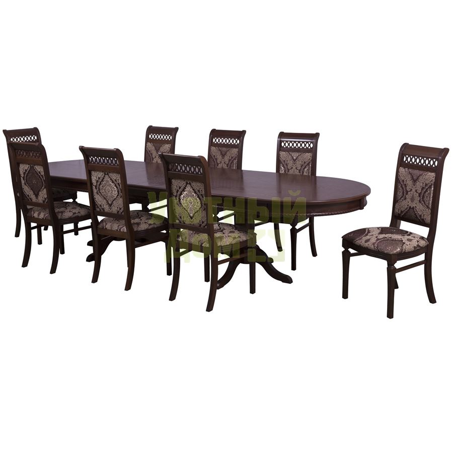 Большой обеденный стол Верона. В сложенном виде длина столешницы составляет 250 см. При помощи синхронного механизма и двух цельных вставок (по 42 см) стол раскладывается до внушительных размеров - 334 см. За таким столом с комфортом разместится от 10 до 14 человек. Фигурные ножки-опоры изготовлены из массива бука, столешница и вставки - плита МДФ толщиной 25 см, облицованные шпоном. К этому роскошному и респектабельному столу идеально подойдут стулья Флоренция или Флоренция 2. Максимальная нагрузка на стол Верона - 80 кг. Стол поставляется в разобранном виде, упакован в две коробки с общим объемом - 0,58 м3 весом - 98 кг