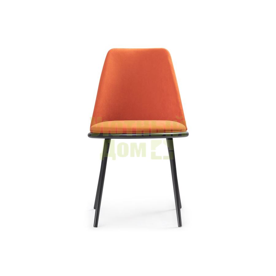 Материал каркаса - Металл; Материал сиденья - Велюр; Материал ножек - Металл; Материал обивки - Велюр; Цвет каркаса - Черный; Цвет сиденья - Оранжевый; Цвет ножек - Черный; Цвет обивки - Оранжевый; Ширина - 50; Глубина - 57; Высота - 81; Ширина сиденья - 45; Глубина сиденья - 47; Высота сиденья - 47;