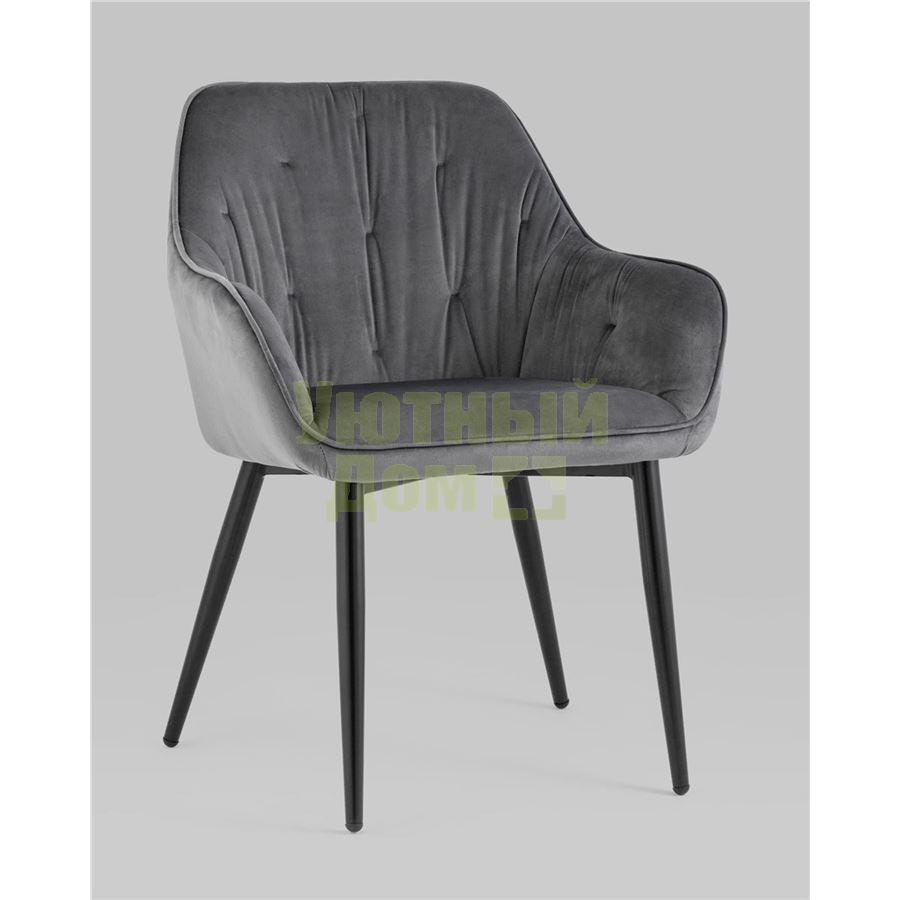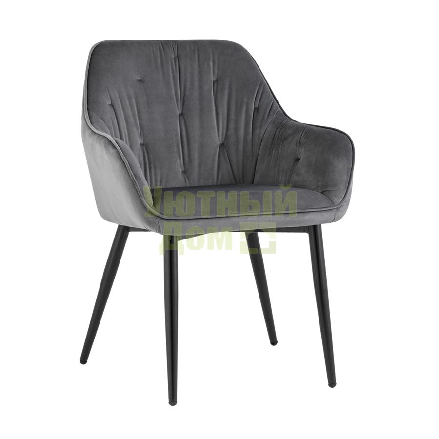 Удобный и мягкий стул украсит любой интерьер. Обивка спинки и сидения выполнена из прочного и износостойкого велюра. Внутренняя сторона стула с декором, удобные подлокотники добавят комфорта. Ножки изготовлены из металла в черном цвете и обеспечивают хорошую устойчивость.