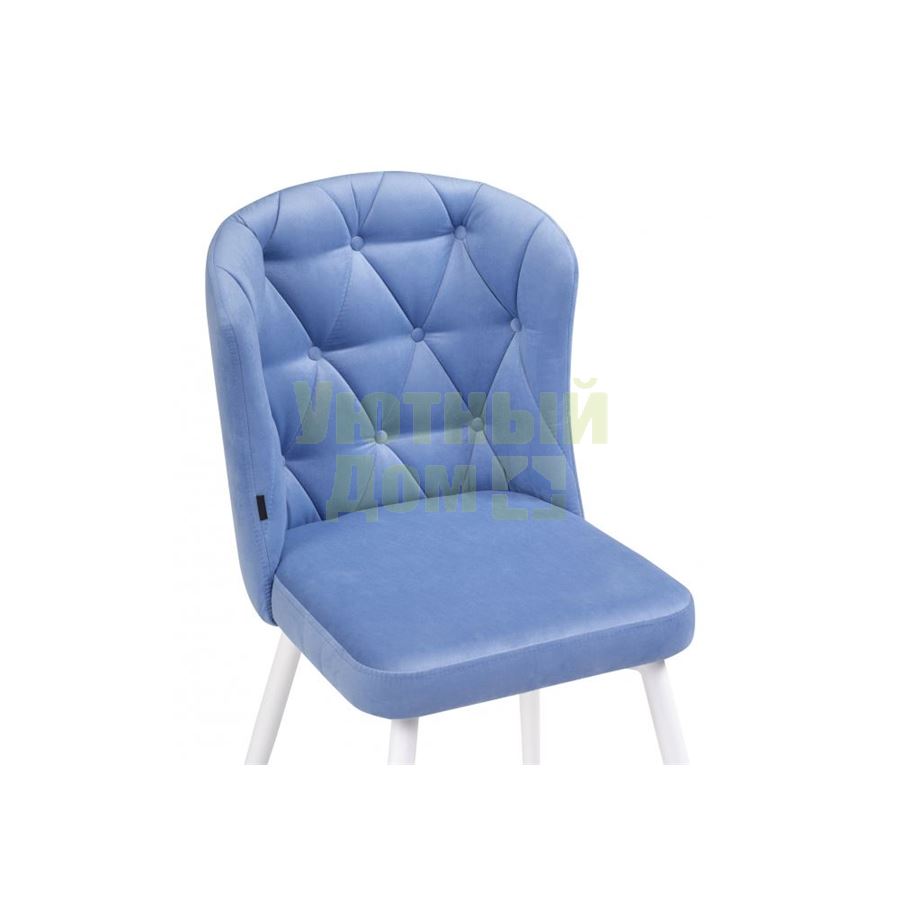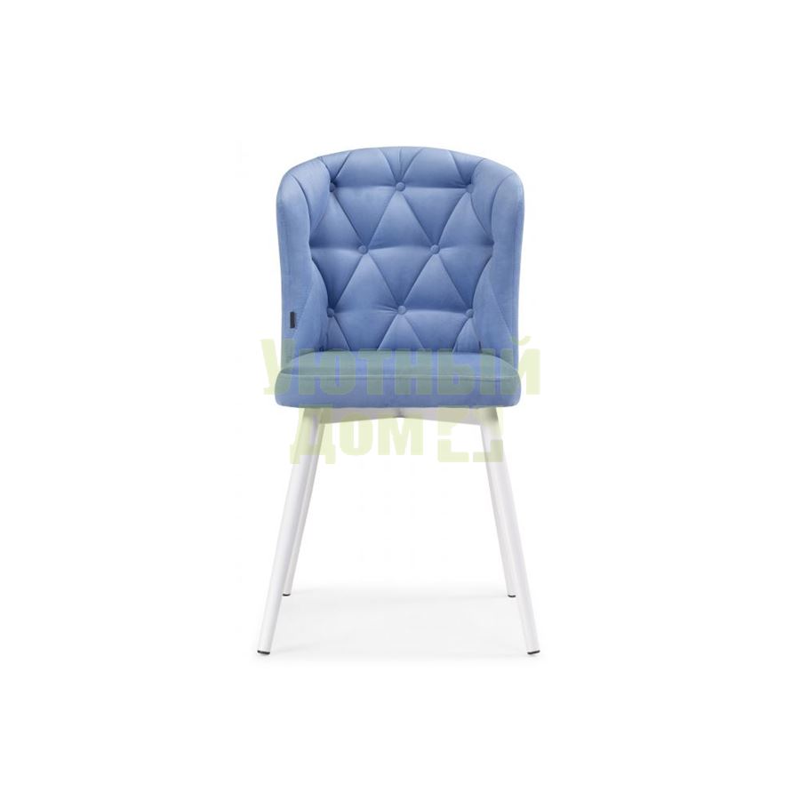 Материал каркаса - Металл; Материал сиденья - Велюр; Материал ножек - Металл; Материал обивки - Велюр; Цвет каркаса - Белый; Цвет сиденья - Синий; Цвет ножек - Белый; Цвет обивки - Синий; Ширина - 48; Глубина - 54; Высота - 85; Ширина сиденья - 42; Глубина сиденья - 42; Высота сиденья - 47;