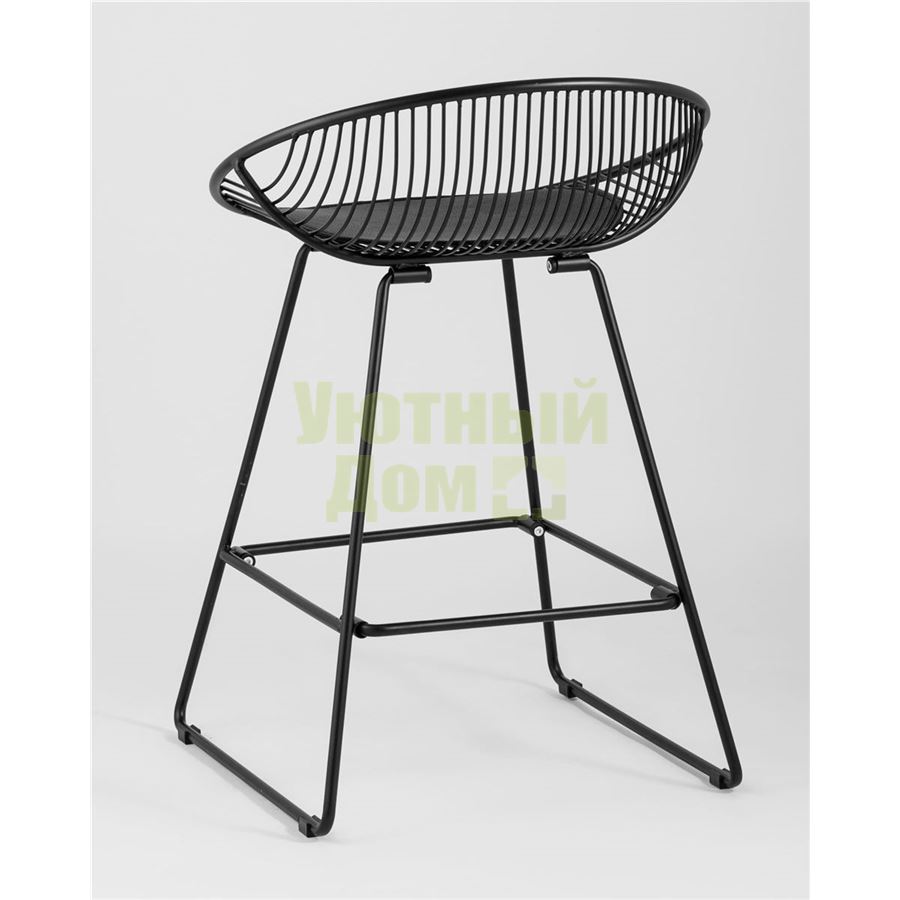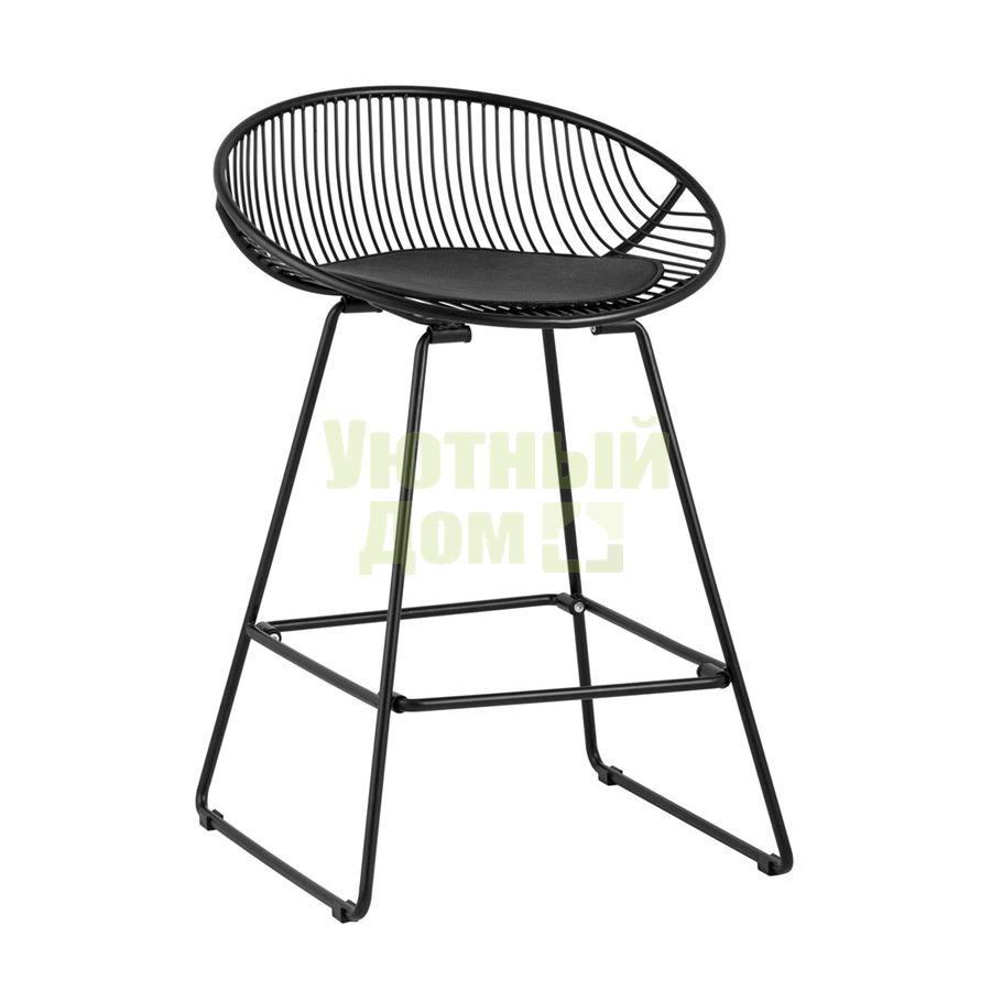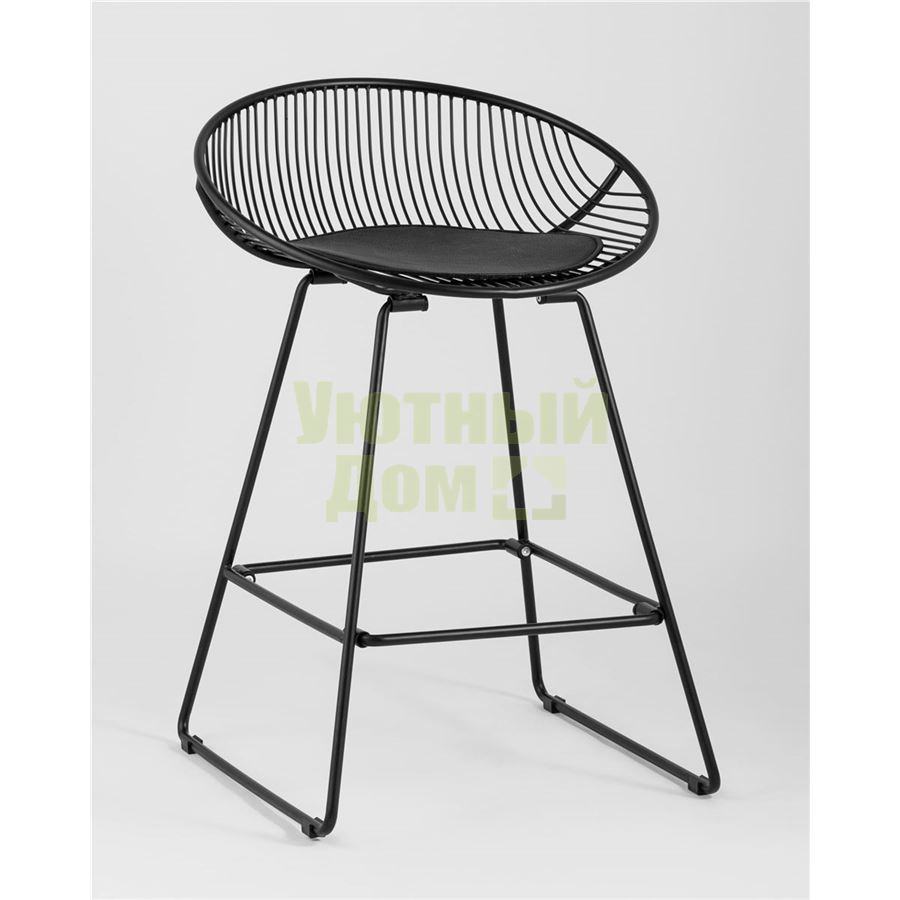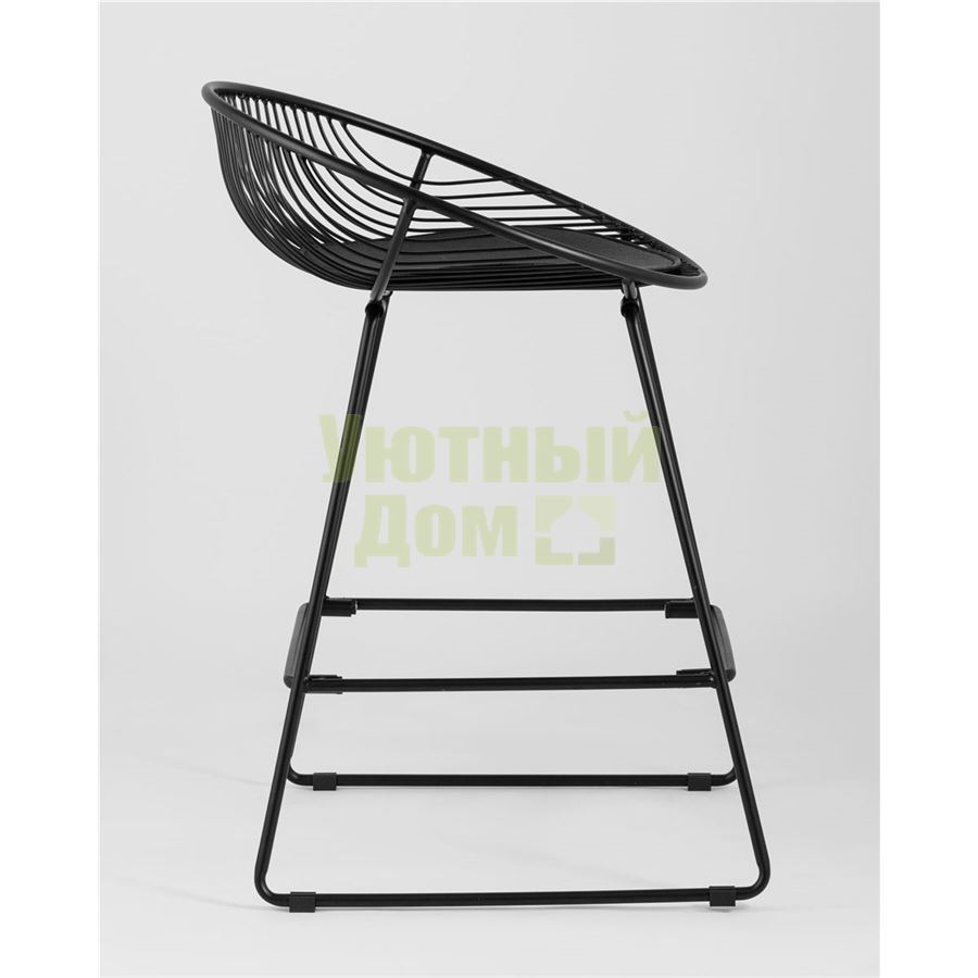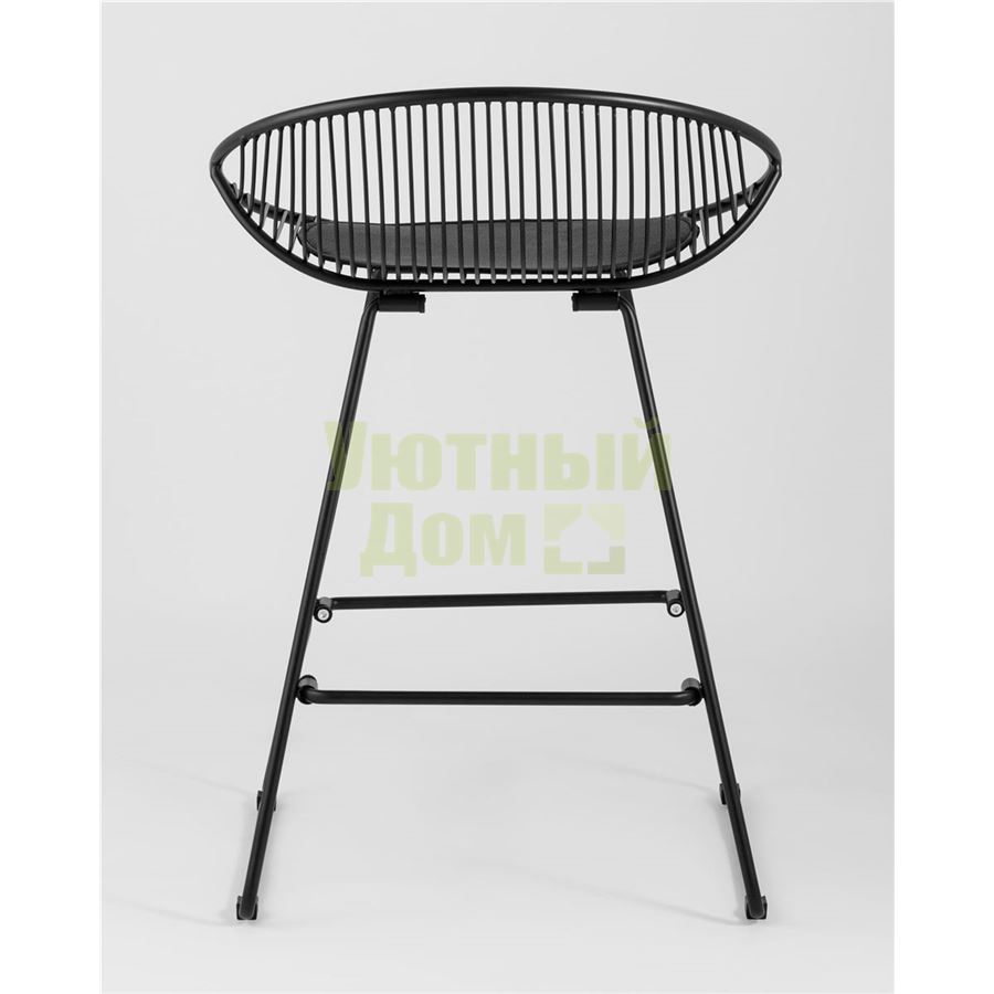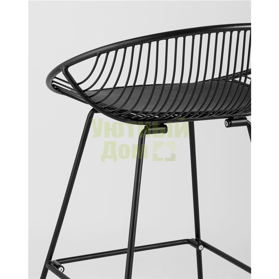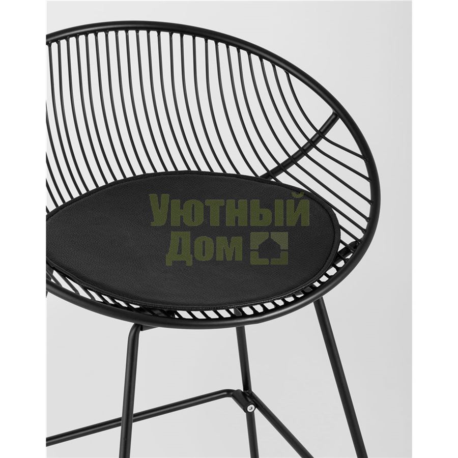 Необычный дизайн барного стула UFO станет акцентом интерьера кухни в современном стиле. Спинка и сидение выполнены из металлических прутьев черного цвета. Подушка изготовлена из черной экокожи. Ножки выполнены из металла в тон сидения и имеют подставки, которые предотвращают скольжение стула по поверхности пола.