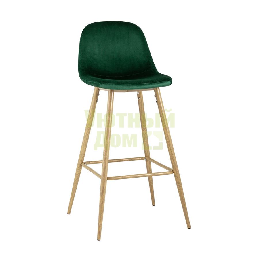 Стул барный Валенсия зеленый обивка из велюра ножки из металла стилизованные под дерево с подножкой