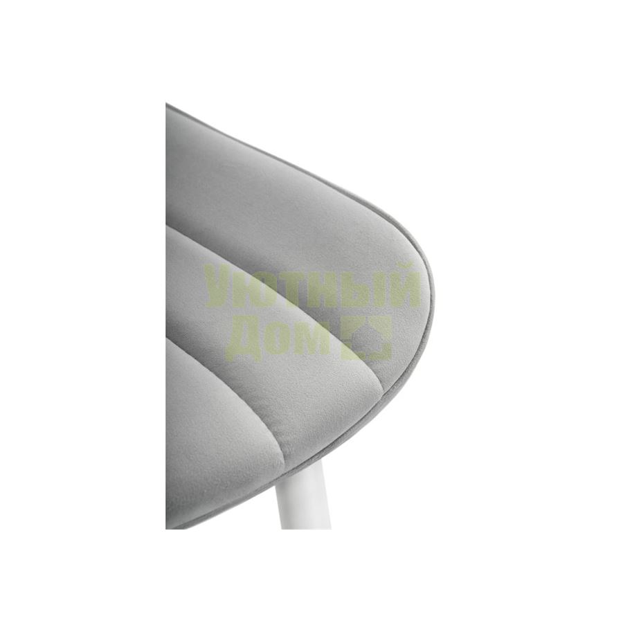 Материал каркаса - Металл; Материал сиденья - Велюр; Материал ножек - Металл; Материал обивки - Велюр; Цвет каркаса - Белый; Цвет сиденья - Серый; Цвет ножек - Белый; Цвет обивки - Серый; Ширина - 50; Глубина - 58; Высота - 84; Ширина сиденья - 41; Глубина сиденья - 41; Высота сиденья - 48;