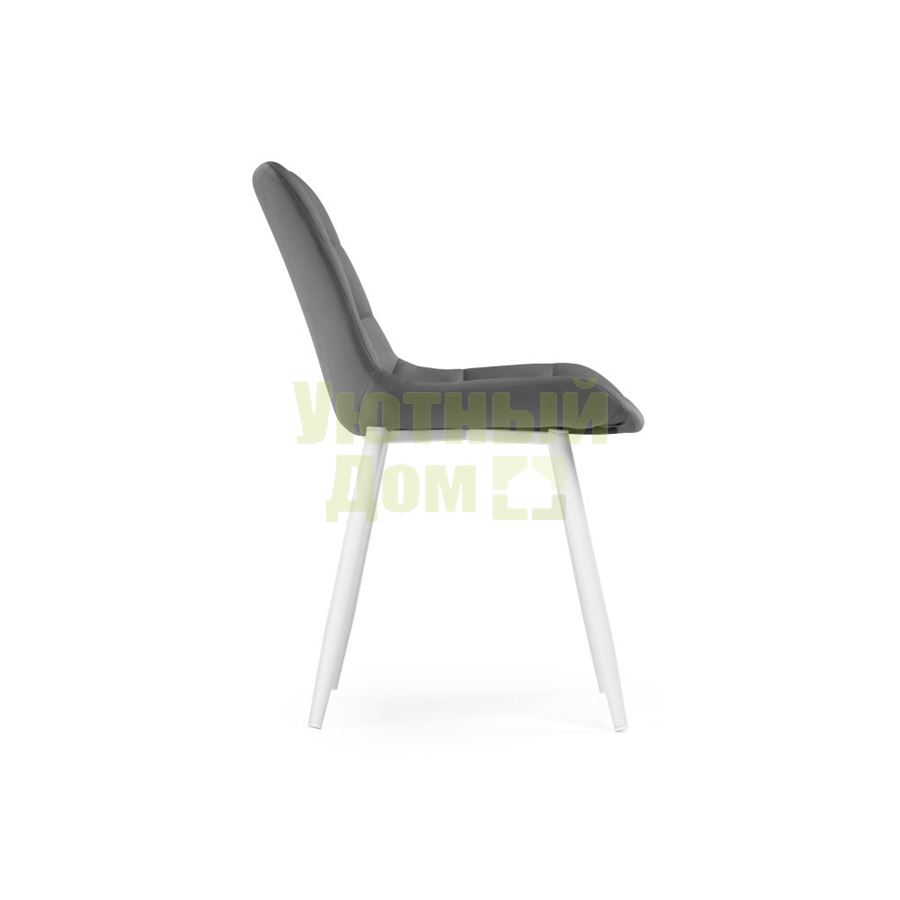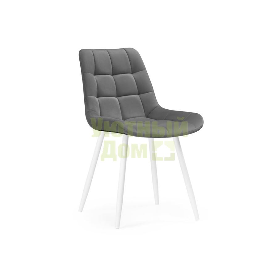 Материал каркаса - Окрашенный металл; Материал сиденья - Велюр; Материал ножек - Окрашенный металл; Материал обивки - Велюр; Цвет каркаса - Белый; Цвет сиденья - Серый; Цвет ножек - Белый; Цвет обивки - Серый; Ширина - 50; Глубина - 60; Высота - 80; Ширина сиденья - 48; Глубина сиденья - 41; Высота сиденья - 48;