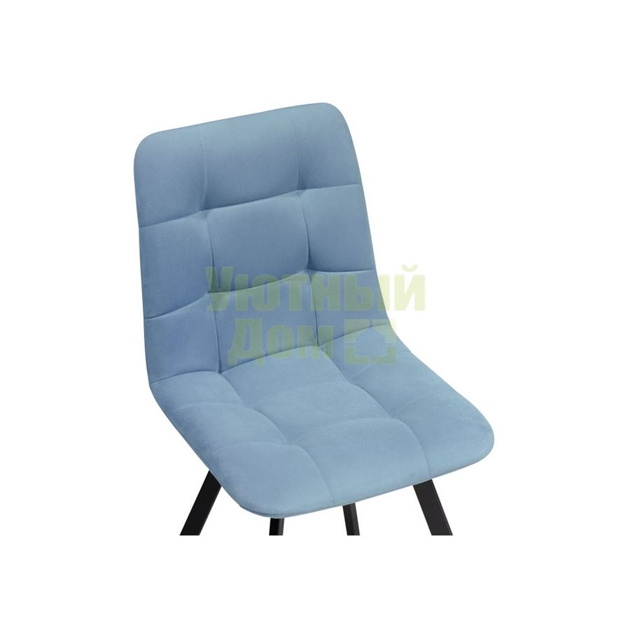 Материал каркаса - Окрашенный металл; Материал сиденья - Велюр; Материал ножек - Окрашенный металл; Материал обивки - Велюр; Цвет каркаса - Черный; Цвет сиденья - Голубой; Цвет ножек - Черный; Цвет обивки - Голубой; Ширина - 43,5; Глубина - 50; Высота - 87,5; Ширина сиденья - 40; Глубина сиденья - 50; Высота сиденья - 49;