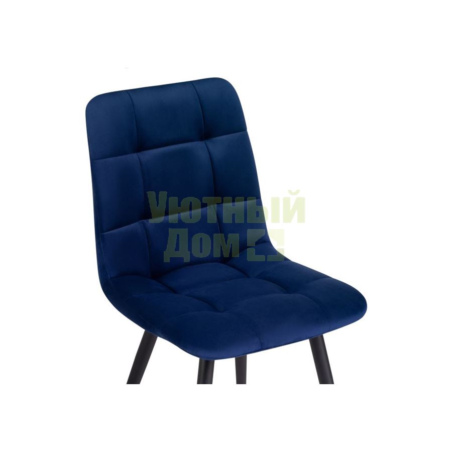 Материал каркаса - Металл; Материал сиденья - Велюр; Материал ножек - Металл; Материал обивки - Велюр; Цвет каркаса - Черный; Цвет сиденья - Синий; Цвет ножек - Черный; Цвет обивки - Синий; Ширина - 44; Глубина - 50; Высота - 85; Ширина сиденья - 43; Глубина сиденья - 37; Высота сиденья - 50;