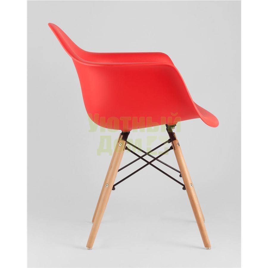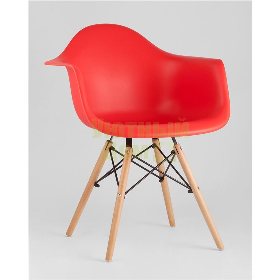 Стул DAW красный, сиденье PP пластик, эргономичные подлокотники, основание массив бука доставляется в пределах МКАД бесплатно, при отправке в регионы России - бесплатно сдадим в ТК ПЭК.