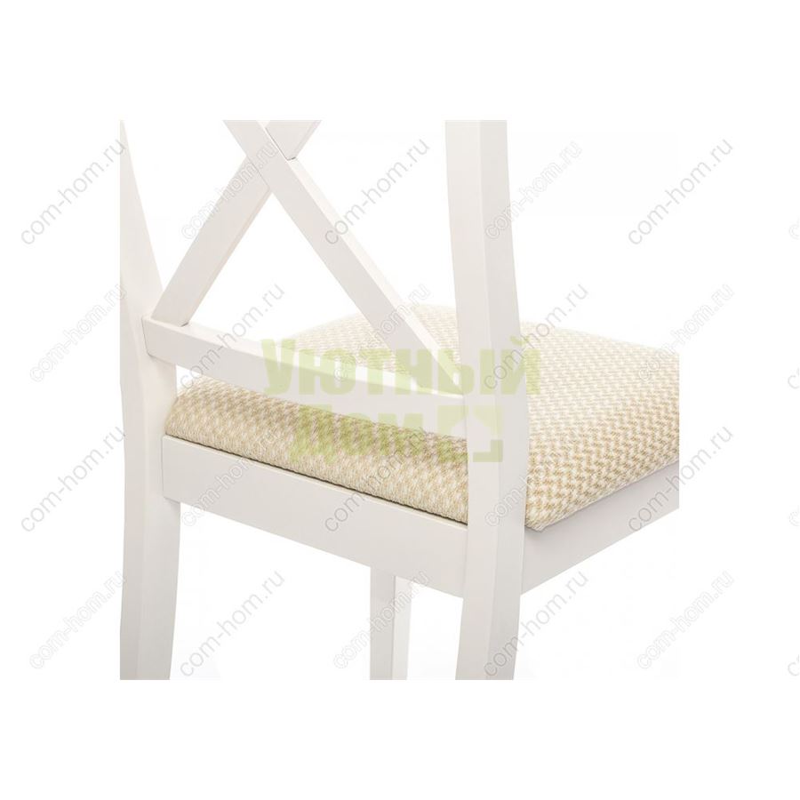 Стиль: Кантри; Ширина: 46; Глубина: 53; Высота стула: 94; Материал каркаса: Массив дерева; Тип дерева: Массив гевеи; Цвет каркаса: Белый; Материал сиденья: Ткань; Цвет сиденья: Бежевый; Тип сиденья: Мягкое; Подлокотники: Без подлокотников; Высота сиденья: 46; Ширина сиденья: 46; Глубина сиденья: 43; Вес: 6.09; Объем: 0.048; Форма поставки: В разобранном виде; Количество в упаковке: 2; Производитель: Малайзия